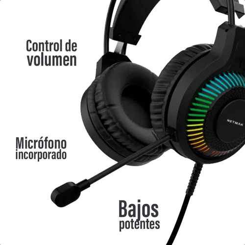 NETMAK AURICULAR GAMER RGB + MICROFONO JACK 3.5MM+USB(LUCES) NM-N18