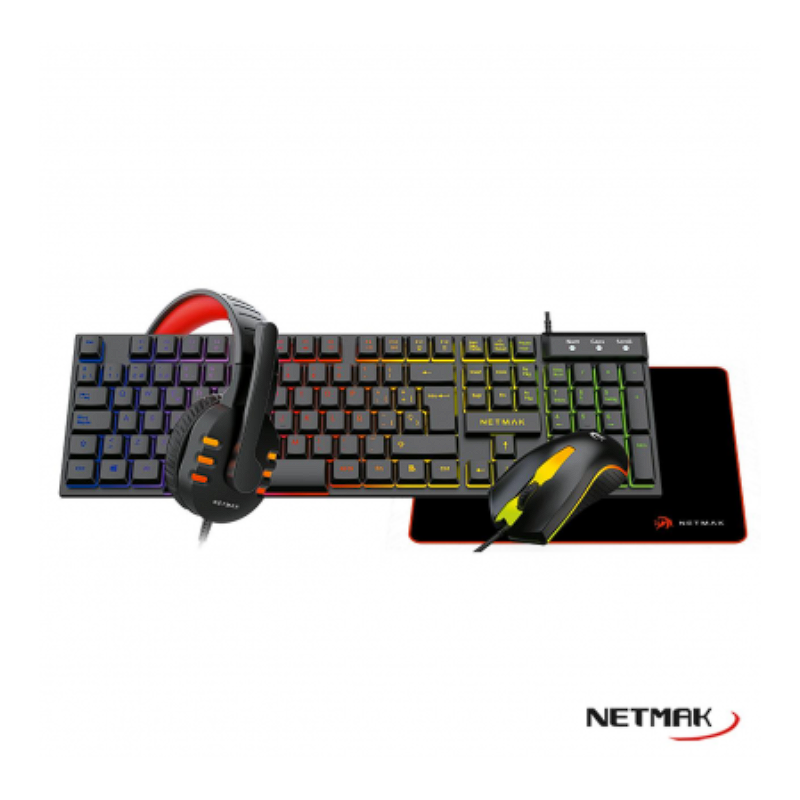 NETMAK COMBO GAMER / TECL RETROILUMINADO + MOUSE GAMER+ AURICULARES + PAD MOUSE / NM-GC479